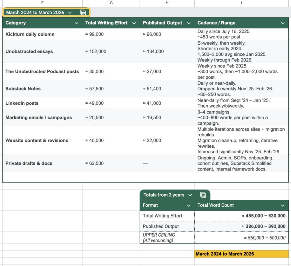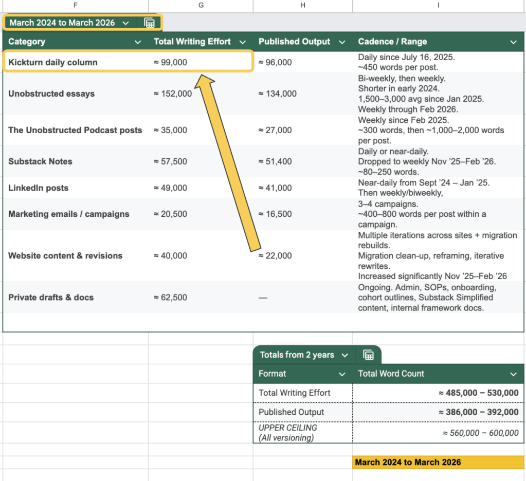Well, it was my first newsletter that I published as myself, and not on behalf of another brand or company. In the time since, I’ve written about 500,000 words… which is kind of mind-blowing. Turns out, showing up to do the thing compounds pretty quickly if you just keep chipping away each day. That became abundantly clear when I launched this daily column in September 2025.